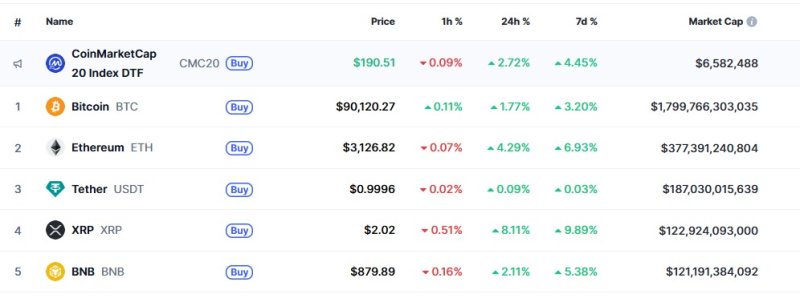 3일 오전 10시 40분 현재 글로벌 코인 시황 중계사이트 코인마켓캡에서 비트코인은 24시간 전보다 1.77% 상승한 9만120달러를 기록하고 있다. 비트코인이 9만달러를 회복한 것. 이는 지난해 12월 13일 이후 처음이다.