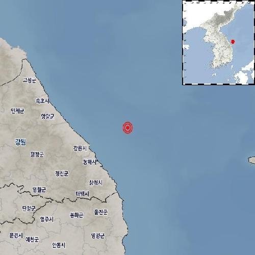 (서울=연합뉴스) 3일 오후 2시 27분 19초 강원 동해시 북동쪽 49km 해역에서 규모 2.2의 지진이 발생했다고 기상청이 밝혔다.