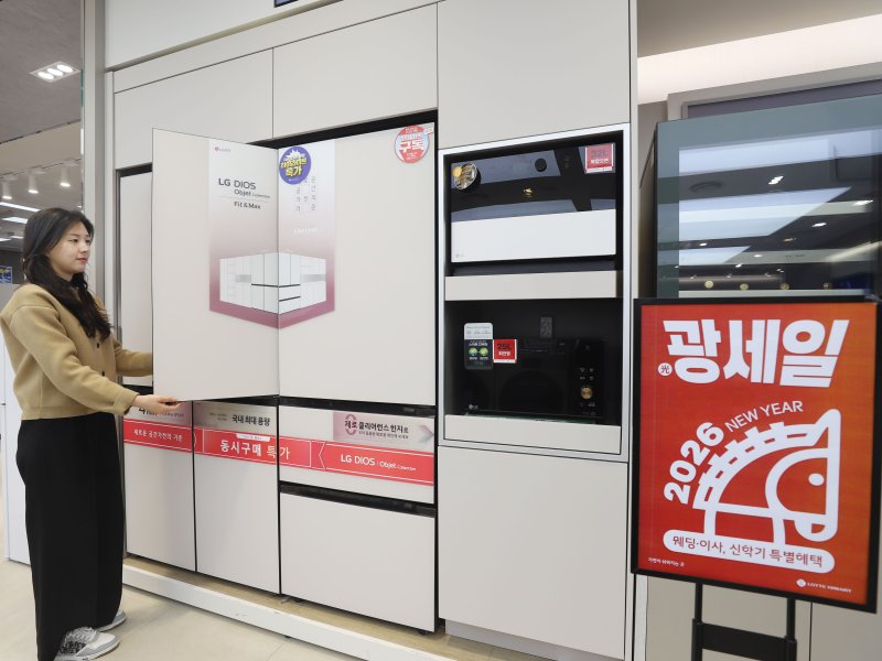 대표 상품은 삼성전자 '김치플러스 4도어(490ℓ)' 199만원, '비스포크 그랑데AI 원바디 Top-Fit(세탁기 25㎏+건조기 20㎏)' 280만원, LG전자 '올레드 TV(65형)' 259만원, '트롬 드럼 세탁기(24㎏)' 149만원 등이다.