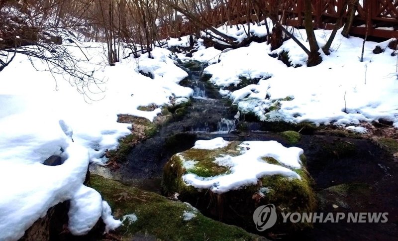 석회암 지대에서 솟아나는 한강의 시작…겨울 설경과 조화