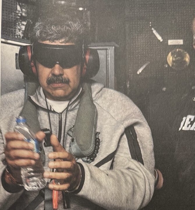매체는 제휴사 WCBS가 포착한 영상에는 회색 옷을 입고 수갑을 찬 마두로가 검은색 옷을 입은 10여 명의 미 연방수사국(FBI) 요원들의 호위를 받으며 이동하는 모습이 담겼다고 전했다.