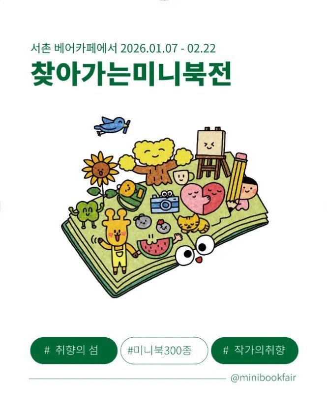 (서울=뉴스1) 김정한 기자 = 출판계의 '숏폼'이라 불리는 미니북의 매력을 한자리에서 만끽할 수 있는 전시가 열린다. 회전문서재가 기획한 '찾아가는 미니북전 2026: 취향의 섬'이 7일부터 2월 22일까지 서촌 베어카페에서 개최된다.