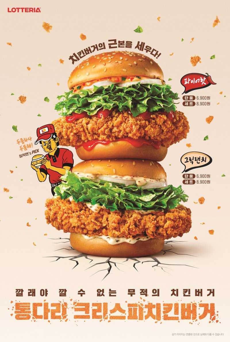 신제품 광고 모델로는 ▲왕돈까스버거 ▲모짜렐라 버거 ▲오징어·크랩 얼라이브 버거 등 롯데리아 관련 다수의 먹방 콘텐츠를 선보이며 소비자들의 주목을 받아온 유튜브 크리에이터 '침착맨'을 발탁했다.