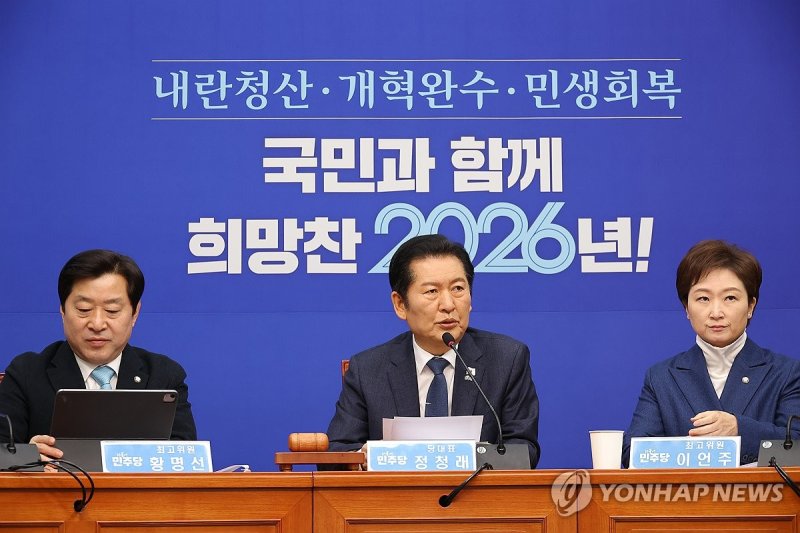 한편 정 대표는 통일교 특검의 수사 대상과 관련해선 "국민의힘에서 (정교 유착 의혹과 관련한) 신천지를 빼자는 뉘앙스로 계속 얘기하고 있는데, 신천지를 왜 빼느냐"며 "국민의힘에서 신천지를 빼자고 할수록 민주당은 꼭 포함해야겠다고 생각한다"고 강조했다.