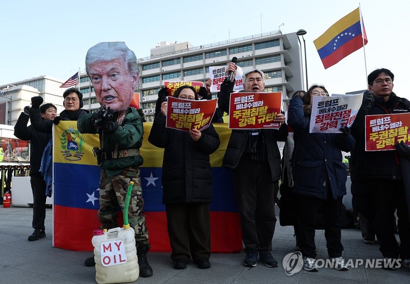 [美 마두로 축출] 시민사회단체, 美대사관 앞서 잇따라 트럼프 규탄광화문광장 회견…마두로 베네수엘라 대통령 석방 등 촉구