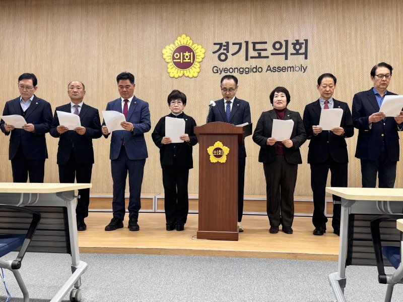 이영희·김영민·정하용·지미연·김선희·강웅철·이성호·윤재영 도의원은 5일 오후 도의회 브리핑룸에서 가진 기자회견을 통해 "용인 반도체 클러스터는 이미 인허가가 완료돼 사업이 진행 중인 국가전략사업"이라며 "정부 일각의 발언이 '이전론'으로 확산하며 정책 기조와 시장 신뢰를 흔들고 있다"고 비판했다.