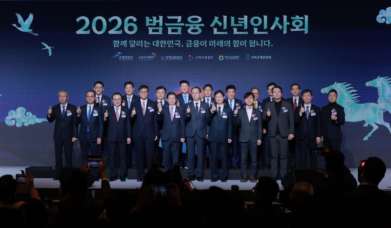 5일 은행연합회와 금융투자협회, 생명보험협회, 손해보험협회, 여신금융협회, 저축은행중앙회 등 6개 금융업권별 협회는서울 중구 소공동 롯데호텔 2층 크리스탈볼룸에서 '2026년 범금융 신년인사회'를 개최했다. 이번 신년인사회에는 금융회사 대표, 정부 관계자, 국회의원, 언론인, 금융유관기관 대표 등 600여 명이 참석했다.