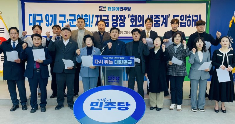 (대구=뉴스1) 남승렬 기자 = 더불어민주당 대구시당 지방의원협의회가 5일 대구 9개 기초의회 본회의와 상임위원회 회의를 실시간 생중계할 것을 촉구했다.