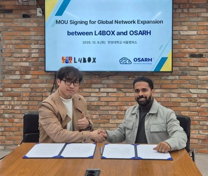 (서울=뉴스1) 장성희 기자 = 한양대 창업지원단은 창업중심대학 참여 기업인 'L4BOX'(엘포박스)가 사우디아라비아의 기술·플랫폼 기업 OSARH와 중동 시장을 중심으로 한 신규 시장 창출과 글로벌 협력 강화를 위해 전략적 업무협약(MOU)을 체결했다고 5일 밝혔다.