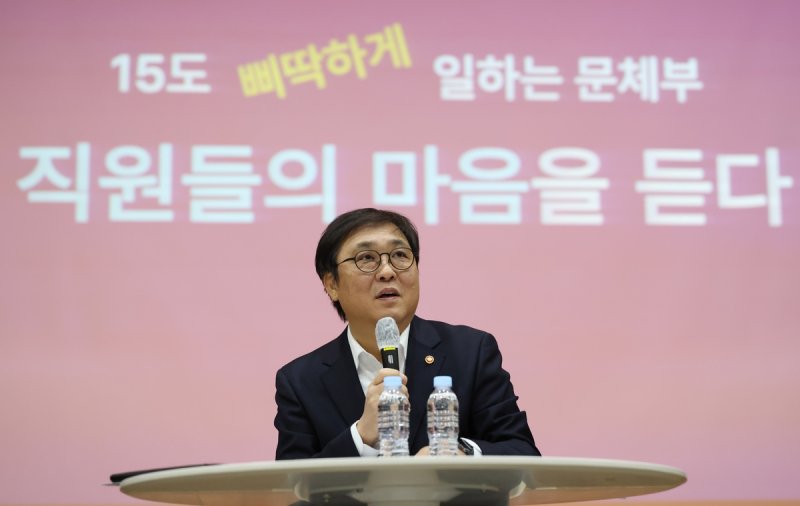 최휘영 문체부 장관은 5일 정부세종청사 15동 대강당에서 열린 '업무 효율화를 위한 직원과의 대화'에서 이 같은 내용을 포함한 조직 문화 혁신안을 밝혔다.