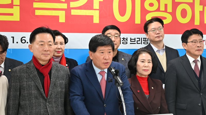 홍성현 충남도의회 의장을 비롯해 천안지역 갑을병 당협위원장과 시·도의원, 지방선거 출마 예정자들은 6일 천안시청 브리핑실에서 기자회견을 열고 "국립치의학연구원 천안 설립은 이재명 대통령의 지역 핵심 공약"이라며 "후보 시절 천안 유치 지원을 도민 앞에 약속했음에도 이제 와서 공모 가능성을 내비치는 건 국정에 대한 신뢰를 스스로 훼손하는 행위"라고 밝혔다.