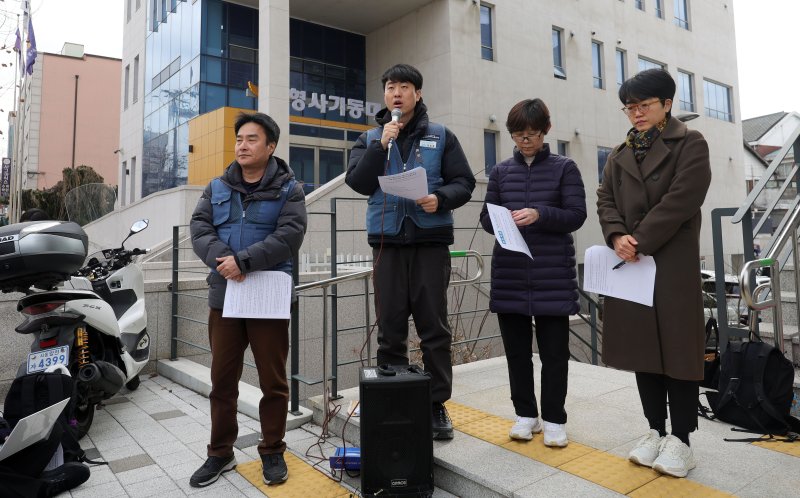 서울경찰청 형사기동대는 6일 오후 서울 마포구 사무실에 택배노조 관계자를 고발인 신분으로 불러 조사했다. 장씨의 모친 박미숙씨도 참고인 신분으로 출석했다.