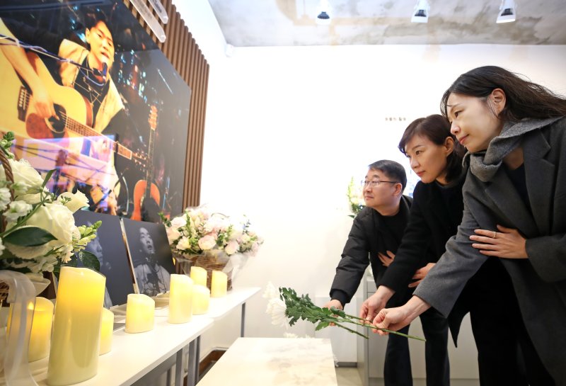 본격적인 추모 행사가 시작되자 시민들은 삼삼오오, 혹은 홀로 고인의 생전 사진 앞에 고개를 숙이며 하얀 국화꽃을 놓았다.