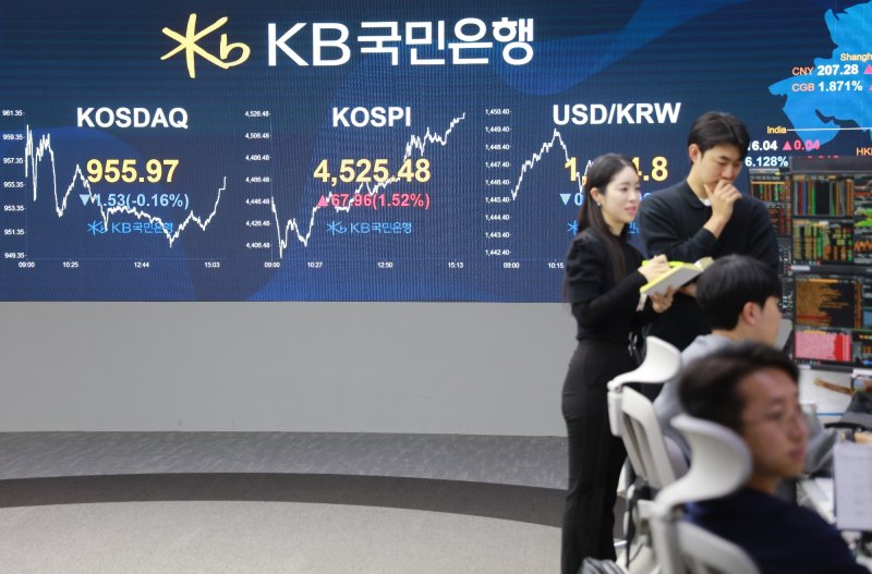 (서울=뉴스1) 박승희 기자 = 코스피가 새해 들어 사흘 연속 올라 연일 백단위 자리를 갈아치우며 4300·4400·4500선을 차례로 넘어섰다. 새해 첫 거래일인 지난 2일 첫 4300선을 돌파한 코스피는 전날 4400선을 넘어선지 하루 만에 4500선 고지마저 뛰어넘었다.