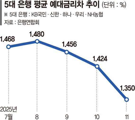 금융권 관계자는 "연말이 자금 관리의 시기라면 연초는 영업이 다시 시작되는 국면으로 특판 예금 등을 중심으로 수신 경쟁이 이어질 가능성이 크다"며 "대체 투자 상품과의 경쟁이 지속되는 상황에서 예금금리를 빠르게 낮추기는 쉽지 않아 예대금리차 축소 흐름도 당분간 이어질 가능성이 있다"고 말했다.