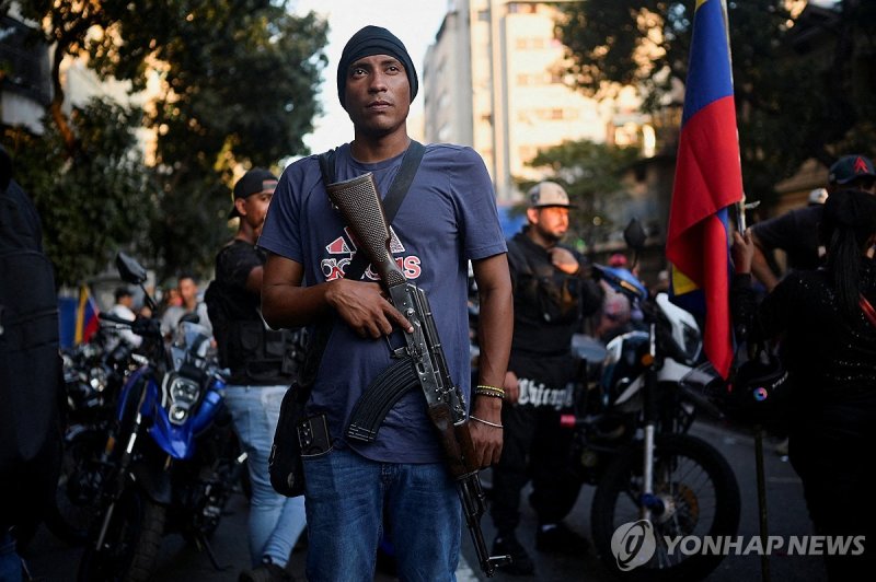 5일(현지시간) 파이낸셜타임스(FT) 등 외신에 따르면 이날 수도 카라카스 거리에 총기를 든 친마두로 무장세력 '콜렉티보'가 거리에 배치됐다.