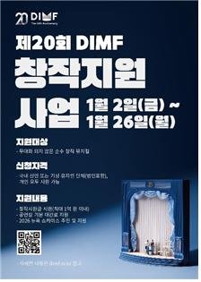 올해는 선정 5개 작품 내외를 대상으로 작품 규모에 따라 4000만~1억원 이내의 창작지원금을 차등 지원한다. 제20회 DIMF 기간 중 최소 3회차 이상 공연이 필수다.