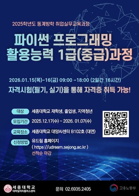 이는 2025학년도 동계방학 취업실무교육과정의 일환이며, 참가 신청은 세종대 학생경력개발시스템 홈페이지에서 가능하다.