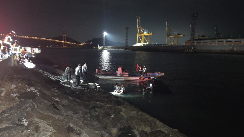 [광양=뉴시스] 김석훈 기자 = 7일 0시24분께 전남 광양항 해양 공원 인근 해상으로 승용차 1대가 추락해 탑승자 2명이 구조됐다.