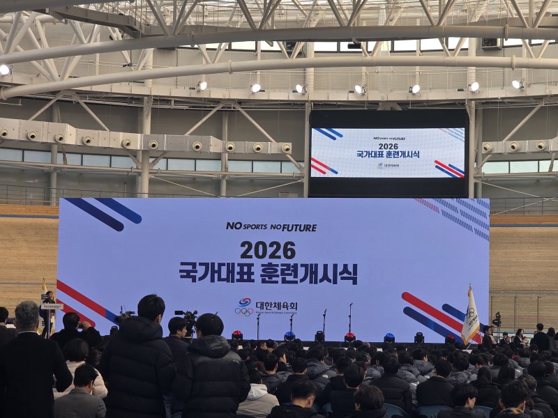 국가대표 선수단은 7일 충북 진천 국가대표선수촌 벨로드롬에서 2026 국가대표 훈련 개시식을 갖고 대형 국제대회가 치러지는 올해를 힘차게 출발했다.
