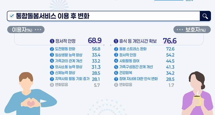 조사 결과 우선 보호자의 76.6%는 서비스 이용을 통해 휴식 등 개인시간을 확보할 수 있었다고 응답했다.