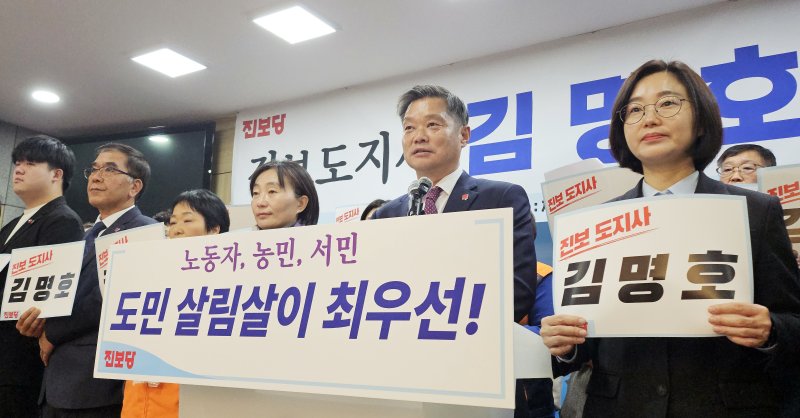 김 위원장은 7일 오전 도의회 도민카페에서 김재연 진보당 상임대표 등과 함께 기자회견을 열고 "도민의 살림살이를 되살리는 진보 도지사, 노동자 도지사가 되겠다"며 이 같은 입장을 밝혔다.