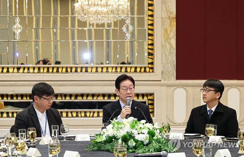 이재명 대통령, 순방 기자단 오찬 간담회 발언 (출처=연합뉴스)