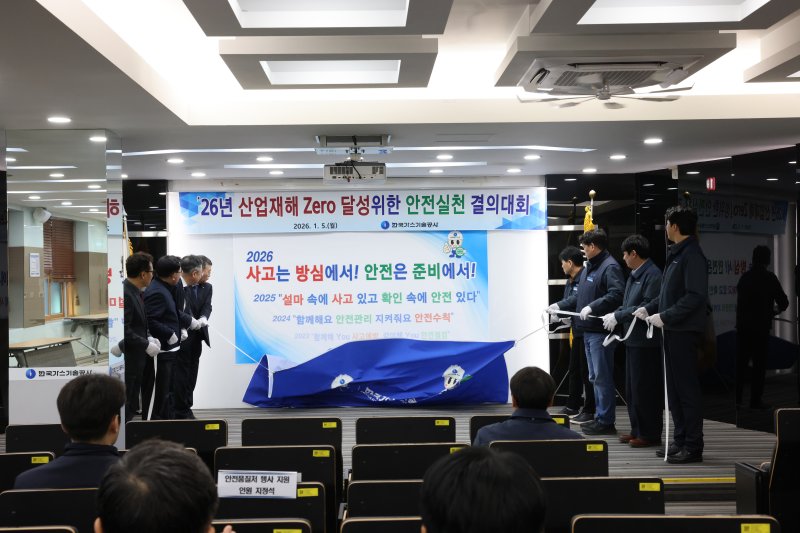 [세종=뉴시스]김동현 기자 = 한국가스기술공사는 지난 5일 대전 본사에 전 임·직원이 모인 가운데 2026년 산업재해 제로 달성위한 안전실천 결의대회 행사를 개최했다고 7일 밝혔다.