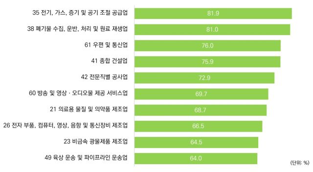 업종별로는 제조업(71만원), 시설관리업(84만원), 보건업 및 사회복지 서비스업(47만원)에서 격차가 상대적으로 컸다.