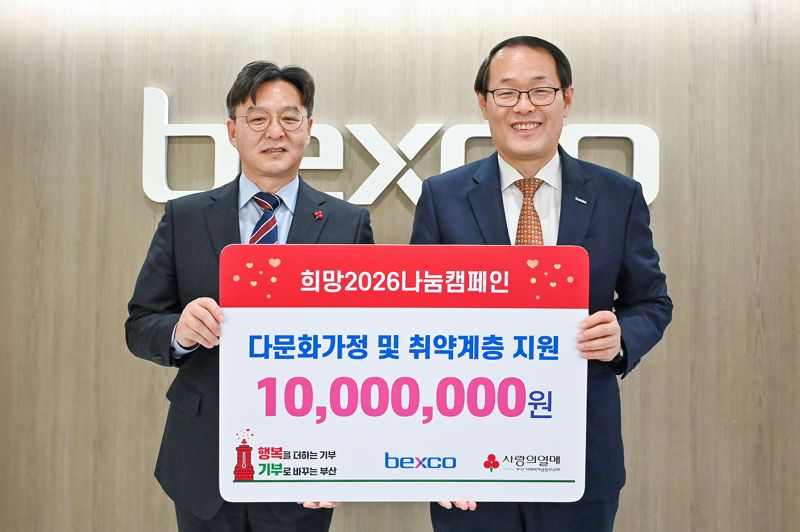 [파이낸셜뉴스] 벡스코가 2026년 새해를 맞아 지난 7일 부산사회복지공동모금회의 ‘희망 2026 나눔캠페인’에 참여해 기부금 1000만원을 전달했다고 8일 밝혔다.