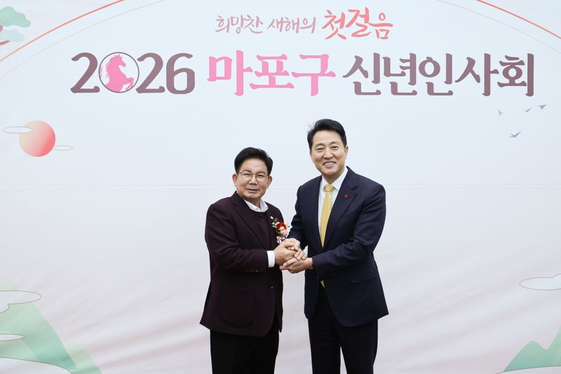서울 마포구는 지난 7일 마포아트센터에서 소통과 화합을 나누는 '2026 마포구 신년인사회'를 개최했다고 8일 밝혔다. 특히 이번 행사에는 오세훈 서울시장도 참석해 시·구 협력을 강조했다.