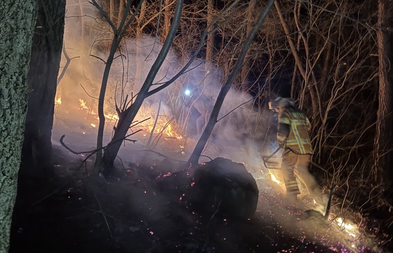 소방과 산림 당국은 산 2부 능선에서 연기와 불꽃이 올라온다는 신고를 받고 출동했다.