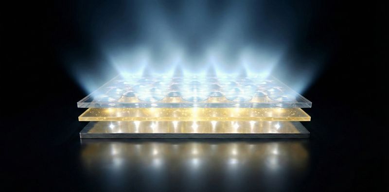 준평면 광추출 구조는 OLED 표면을 거의 평평하게 유지하면서, 안에서 만들어진 빛을 밖으로 더 많이 꺼내 주는 얇은 구조다.