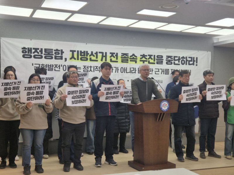 이어 "주민들은 행정통합에 대한 검증과 판단의 시간이 주어지기 전에 찬성과 반대라는 선택지 앞에 놓였다"면서 "이것이 과연 지역과 주민을 위한 결정인가"라고 반문했다.
