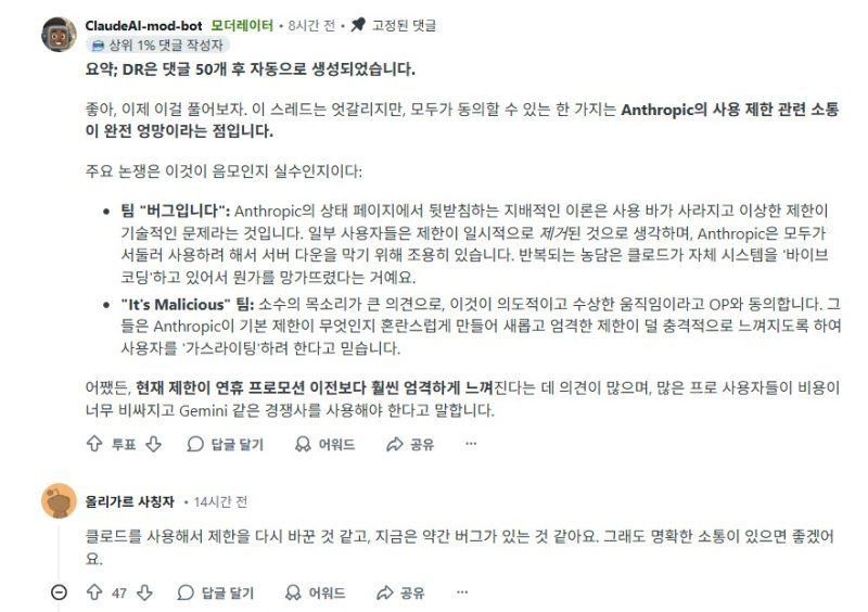 여기에 앤트로픽 대변인이 "보너스 토큰 이벤트가 종료된 것"이라며 이용자들의 상황과 동 떨어진 해명을 내놓으면서 '신뢰의 위기'로 확대되고 있다.