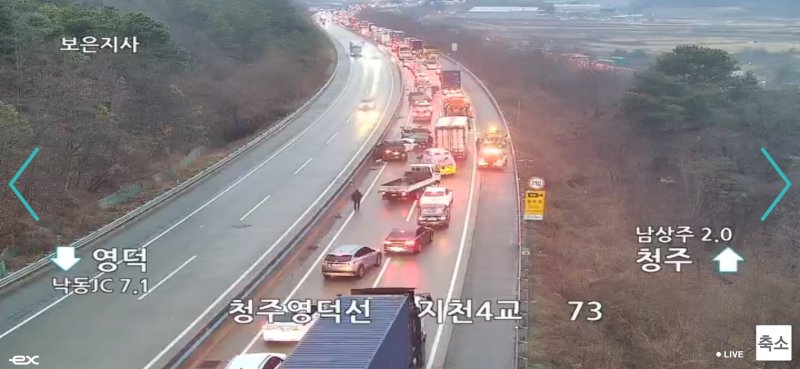 경찰은 "현재 청주 방면 통행이 통제되고 있다"며 "국도를 이용해 우회해 달라"고 당부했다.
