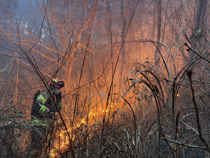 당국은 전날 오후 3시 40분쯤 '대응 2단계'를 발령하고 800여 명의 인력과 헬기 15대, 진화 장비 120여대 등을 투입해 산불 진화 작업을 벌였다.