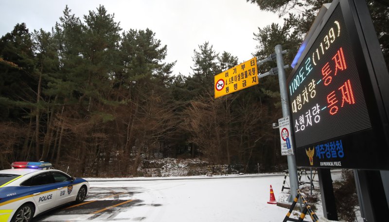전날부터 이날 오전 9시까지 지점별 누적 최심신적설량(새로 내려 가장 많이 쌓인 눈의 양)을 보면 어리목(산지) 6.3㎝, 한남(남부 중산간) 3.4㎝, 산천단(북부 중산간) 1.1㎝, 성산 수산(동부) 3.0㎝, 서귀포(남부) 2.1㎝ 등이다.