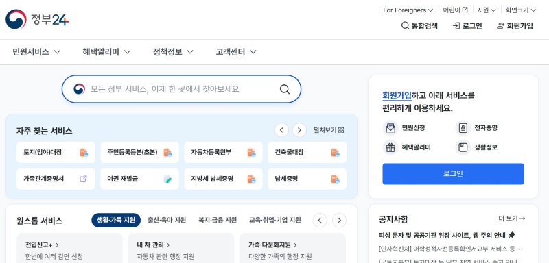 정부24 제증명서 발급은 수수료 없이 무료로 이용할 수 있다. 다만 민원발급 대행 수수료를 받고 있는 민간 대행 사이트가 있어, 민원 발급 시 정부24 누리집이 맞는지 확인해야 한다.