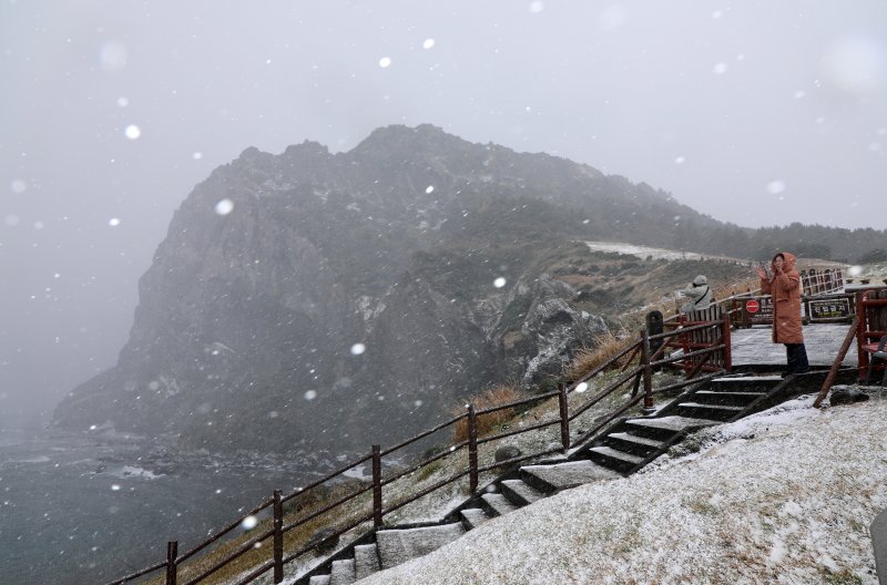 기상청에 따르면 서해상에서 유입되는 눈구름대의 영향으로 현재 제주에는 산지를 중심으로 시간당 1㎝ 안팎의 눈이 내리고 있다.