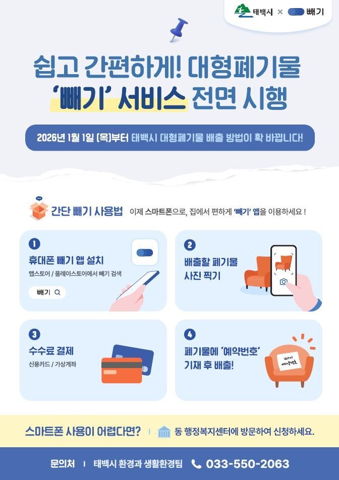 (태백=뉴스1) 신관호 기자 = 강원 태백시가 올해 대형폐기물 원스톱처리서비스 앱 '빼기'를 도입해 시행 중이다.