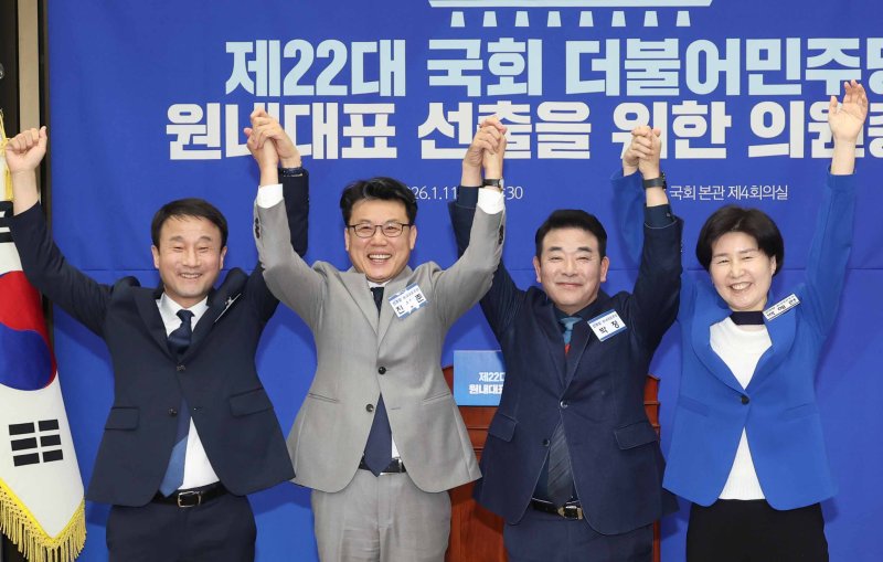 한병도·진성준·백혜련·박정 후보(기호순)는 이날 열린 의원총회에서 오는 6.3 지방선거 승리 전략을 만들고, 당 위기 수습에 나서겠다고 밝혔다.