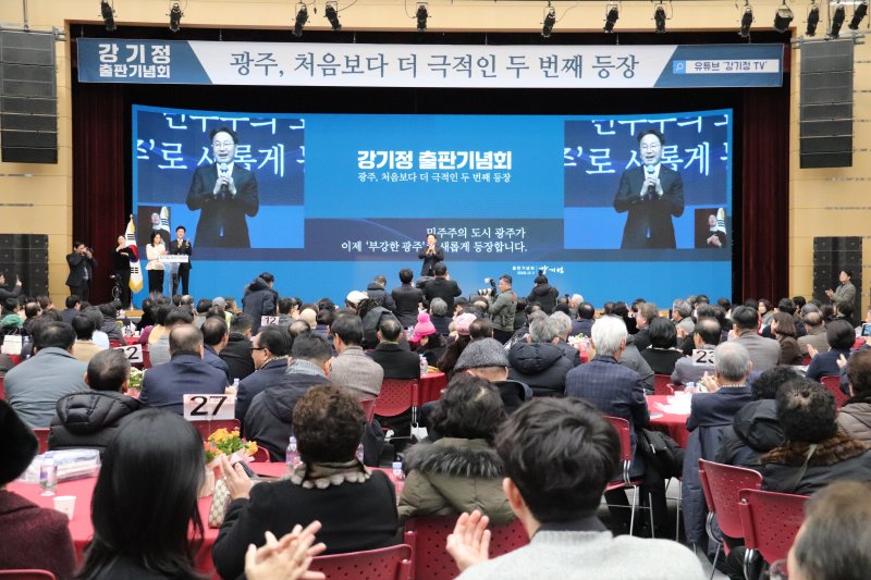 강 시장은 이날 출판기념회에서 새 저서 '광주, 처음보다 더 극적인 두 번째 등장'을 선보였다. 강 시장은 이날 행사에서 '부강한 광주' '부강한 광주·전남' 비전을 밝히고 시정 과정을 돌아봤다.