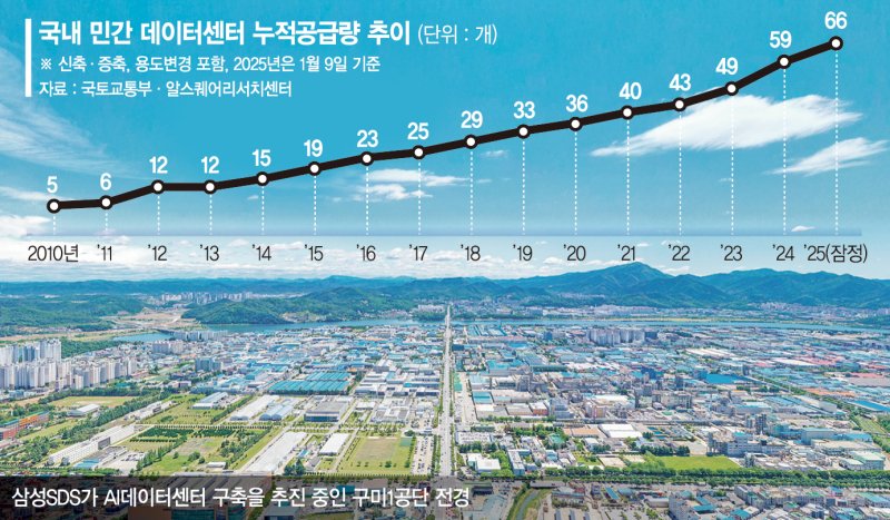 11일 업계에 따르면 글로벌 빅테크 기업들과 국내 대형사들이 AI 데이터센터 구축에 적극 협력하면서 민간 데이터센터 공급은 꾸준히 늘고 있다. 상업용 부동산 서비스기업 알스퀘어 리서치센터와 국토교통부에 따르면 민간 데이터센터 공급량은 신축과 증축, 용도변경 등을 모두 포함해 2010년 전국 5개에서 10년 후인 2020년 36개로 늘었다.
