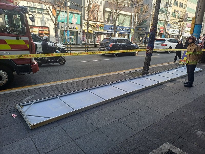 신고 내용을 보면 외장재 이탈 10건, 현수막 이탈 4건, 간판 낙하 4건, 지붕 이탈 3건 등이었다.