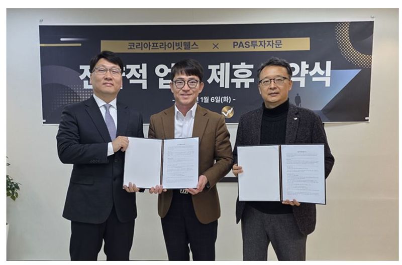 [파이낸셜뉴스] 종합 재무컨설팅 전문기업 코리아프라이빗웰스와 PAS투자자문이 전략적 업무 제휴 협약(MOU)을 체결하고 고객 중심 자산관리 서비스의 고도화에 나선다고 12일 밝혔다.
