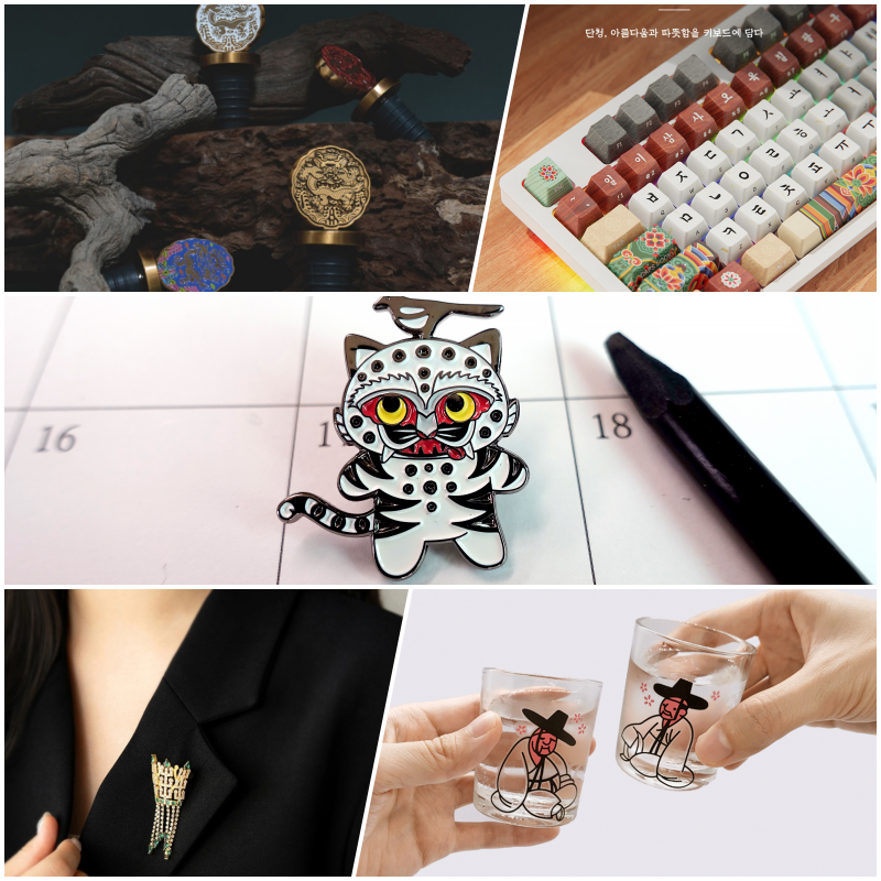 인기 상품을 보면 지난해는 '케이팝 데몬 헌터스'가 세계적 열풍을 불러일으키면서 영화 속 캐릭터를 닮은 까치 호랑이 배지가 약 9만개 팔려 단연 1위에 올랐다. 차가운 음료를 부으면 잔 표면의 선비 얼굴이 붉게 물드는 '취객선비 3인방 변색잔 세트'도 약 6만 개가 판매돼 15억원의 매출을 달성했다. '왕의 옷'인 곤룡포 문양이 돋보이는 수건, 신라 금관을 활용한 브로치 등도 주목받았다.