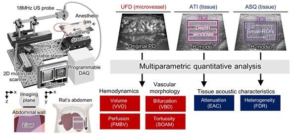 핵심은 초고속 도플러 영상(UFD) 기술이다. 이 기술은 초당 수천 장 이상의 초음파 영상으로 머리카락보다 가느다란 혈관 속 혈류까지 정밀하게 포착한다. 여기에 간 조직 지방 축적과 구조 변화를 측정하는 기존 초음파 기법을 더했다.