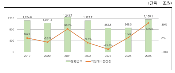 유형별로는 일반 단기사채가 834.2조원이 발행돼 전년(625.3조원) 대비 33.4%가 증가했고, 유동화 단기사채는 325.9조원이 발행돼 전년(243조원) 대비 34.1% 증가했다.
