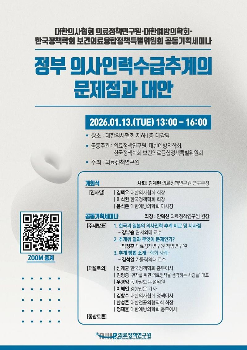 특히 이번 토론회에서는 전일제 환산지수(FTE)를 반영한 전혀 다른 의사 수급 추계 결과가 제시되며, 기존 정부 추계가 유일한 정답이 아니라는 점도 부각됐다. 한 회장은 “어떤 추계가 옳은지 단정할 수 없는 상황에서, 답을 정해놓고 밀어붙이는 방식이야말로 문제”라고 강조했다.
